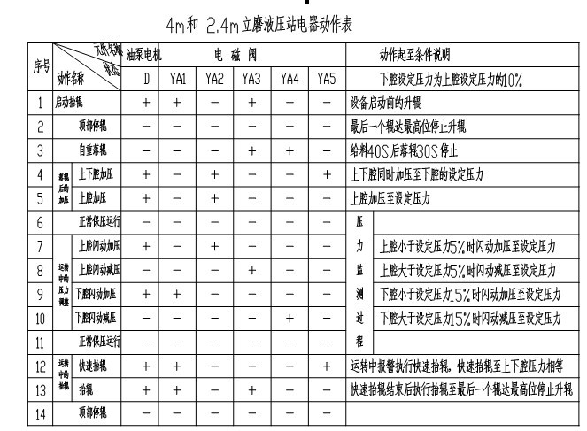 注:“+”號為得電,“-”號為失電。 五、立磨其它電氣元件控制說明 在水泥生產(chǎn)線技術(shù)人員不在的情況下,一些故障難以自主解決可以及時(shí)撥打環(huán)球重工技術(shù)部電話:+86-371-63759558 或銷售維護(hù)電話:15981850664