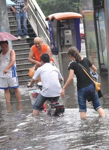 昨日是不安靜的一天,昨日是鄭州天氣的搖滾的一天! 2011年7月26日我公司4名奔赴朝鮮水泥生產線中水泥設備安裝的員工先乘坐鄭州至沈陽的動車,上午14.30前去購票,37℃的高溫沒有任何遮掩的空地,站著不動已是汗流浹背,擁擠的售票大廳像是悶熱的蒸籠,輾轉反側15點多才買到票,走出售票大廳~赫!天頓然漆黑,暴雨一觸即發(fā)!先是高溫預警,接著雷電預警、暴雨預警,從當日15:00開始,一場從西南到東北的強雷陣雨襲擊南陽,南陽市區(qū)多條道路上的大樹被刮倒,市區(qū)多個路口由于積水較深無法通行;鄧州市一家奶牛廠,半個小時內占地400多畝的鋁鐵皮奶棚全部被大風刮倒。截至當日18:50,南陽市最大降雨量達136毫米,出現(xiàn)在鄧州市龍堰鎮(zhèn),其他23個鄉(xiāng)鎮(zhèn)降雨量均在50毫米以上。②13 頓時一片漆黑,暴雨一觸即發(fā) 鄭州水城 我約你一起來鄭州看海